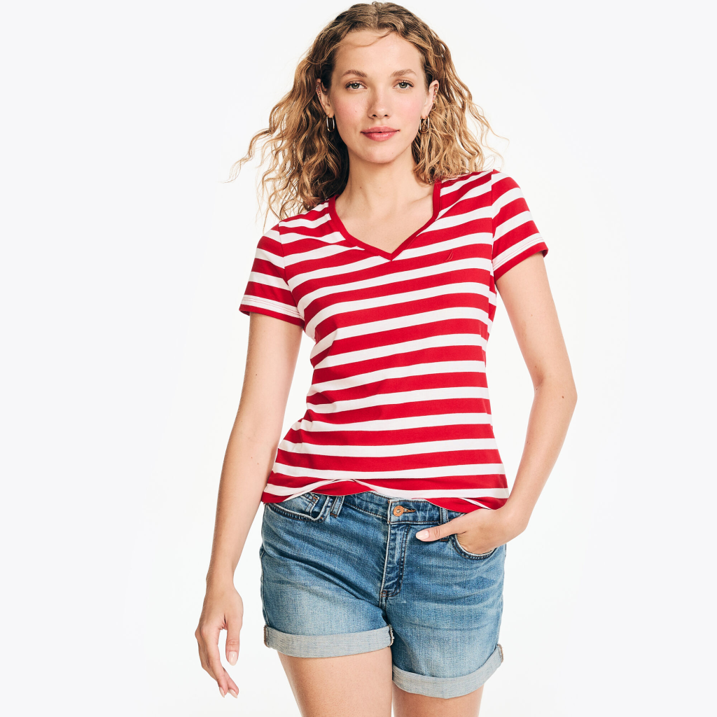 1. Sail Into Style: Sustainably Crafted Striped V-Neck T-Shirt