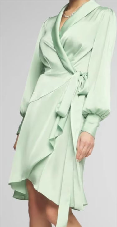 Draped in sophistication, the Long Sleeve Satin Wrap Mini Dress from the Special Event category embodies timeless allure. Paired with the Multi-Strap Heels from the Shoes category, this ensemble exudes modern charm. Completing the ensemble, the Silver Crystal Linear Drop Earrings from the special event category bring a dazzling sparkle, framing your face with refined elegance. This curated combination captures the essence of glamour, making it the perfect choice for a memorable evening affair.