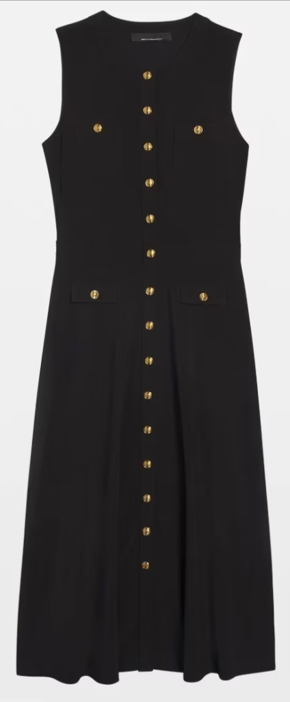 The Sleeveless Matte Jersey Crest Button Midi Dress from the Work Dresses category takes center stage. Its refined silhouette and subtle details make it a versatile piece for any corporate setting. Pairing seamlessly, the Slip-On Blazer from the Suiting+Separates category adds a layer of polished authority. Completing the look, the Fluid Tapered Ankle Pants from the Work Wear category offer comfort without compromising style.